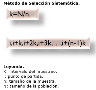 Después de determinar el intervalo del muestreo se debe establecer un punto de partida inicial con el fin de que cada partida de la población tenga una oportunidad igual de ser seleccionada. Este procedimiento exige numerar todos los elementos de la población, pero en lugar de extraer (n) números aleatorios solo se extrae uno que servirá de punto de partida inicial. Se parte de ese número aleatorio i, que es un número elegido al azar, y los elementos que integran la muestra son los que ocupan los lugares i,i+k,i+2k,i+3k, ,i+(n-1)k, es decir se toman los individuos de k en k, siendo k el intervalo de muestreo.