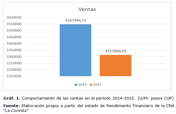 Con el estudio horizontal del Estado de Rendimiento Financiero se pudo conocer que las ventas del año 2015 fueron inferiores en $234 628.28 con respecto al año anterior, siendo esta disminución del 6,61%, situación que estuvo explicada por los altos precios a los que comercializan sus productos (Ver Gráfico 1).