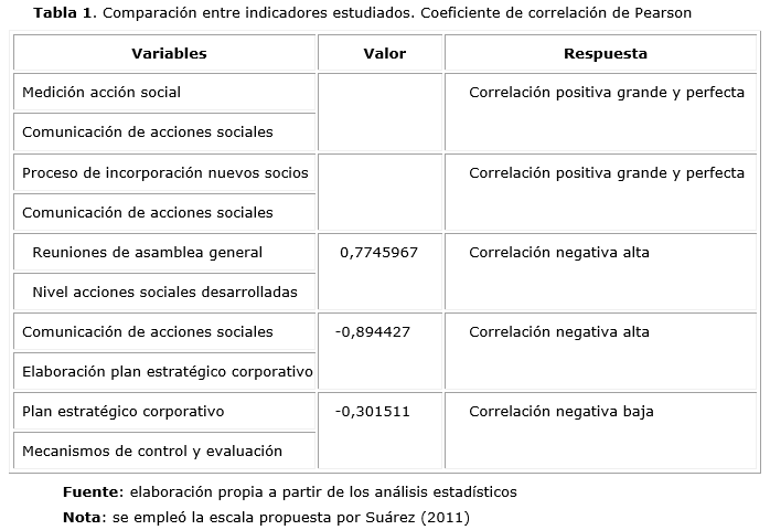 De acuerdo a los resultados obtenidos, el sistema de registro, evaluación y medición de la acción social que realiza la cooperativa es de calidad media (6 en una escala de 10), y puede estar influenciada por el nivel de comunicación de las acciones sociales que desarrolla la cooperativa, ya que como se expone en la tabla 1, la calidad del sistema de medición de acción social se encuentra relacionada directamente con la comunicación de acciones sociales a los accionistas. Tómese en consideración que según Novkovic y Miner (2015), las empresas cooperativas son organizaciones de propiedad de sus asociados, democráticamente controladas por ellos. Es decir, los directivos están en la obligación de comunicar a sus accionistas/socios la acción social que llevan a cabo, así como los resultados obtenidos por la misma para su posterior evaluación.