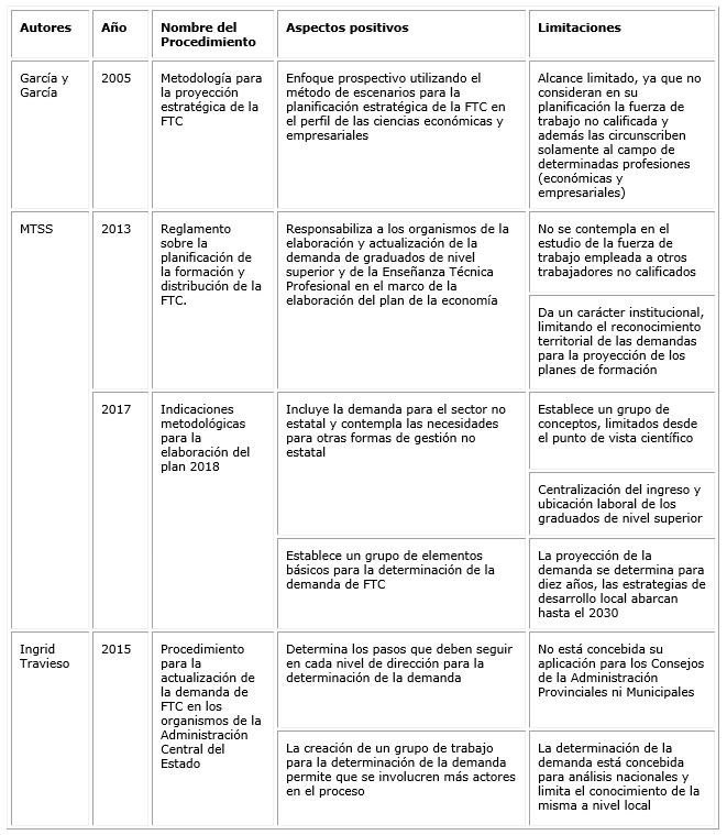 Ahora bien, en la bibliografía especializada se revisaron diferentes procedimientos, metodologías e indicaciones utilizadas en Cuba para la actualización de la demanda de FTC, con el objetivo de comparar el procedimiento propuesto con otros resultados similares.