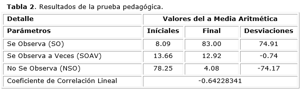 Para la constatación del grado de apropiación del sistema contable por los profesionales en formación se desarrolló un sistema de talleres en la empresa simulada y se aplicó la prueba pedagógica (como cierre del prexperimento). (Ver tabla 2)