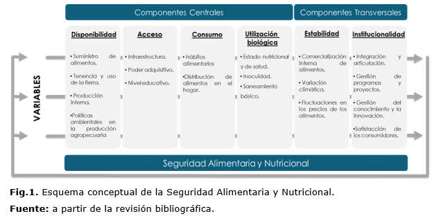 La Seguridad Alimentaria y Nutricional actualmente debe ser analizada con un enfoque multidimensional (intersectorial e interdisciplinaria) ya que comprende la disponibilidad, el acceso, el consumo y la utilización biológica de los alimentos. De esta manera, la SAN en todos sus niveles: mundial, regional, nacional, municipal o en el hogar y hasta el nivel individual, es afectada por una compleja combinación de condiciones sociales, económicas, políticas y culturales en un ámbito dado.