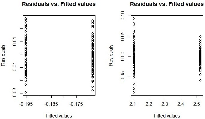 Fig. 7 - Residue graphs to do the analysis of the equal variance assumption