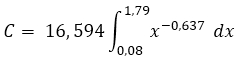 To identify the Consumer Surplus, that is, the area under the Marshall demand curve, the integration calculation of the estimated demand function is used as follows: