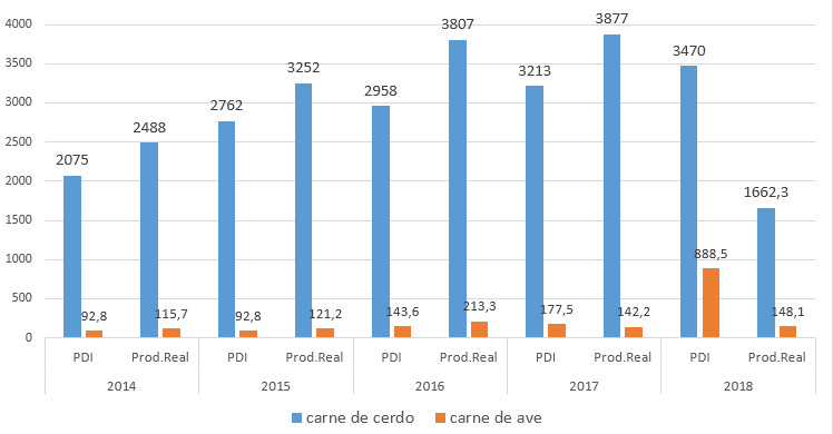This led to an increase in the number of farmers engaged in this activity and, of course, to an increase in pork production, to the point that the PDI plan was met at an average of 106.1% during the period under study.