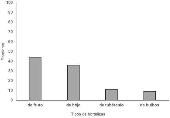 More than half of the households surveyed preferred the following vegetables (Table 1): tomato (Solanum lycopersicum), cucumber (Cucumis sativus), onion (Allium cepa), cabbage (Brassica oleracea), green bean (Phaseolus vulgaris var. Vulgaris), bell bell pepper (Capsicum annuum), lettuce (Lactuca sativa) and leek garlic (Allium ampeloprasum var. porrum).