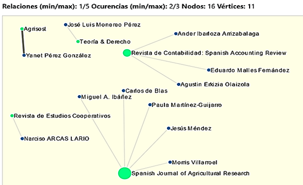 La mayor representación de la producción científica se visualiza en revistas relacionadas con las Ciencias Económicas. Lo que significa que la temática gestión de empresas cooperativas, aunque es poco tratada por la comunidad científica del dominio que se analiza, está siendo socializada en fuentes de información que profundizan en las variables económicas y la utilización de métodos científicos de esta área de la ciencia.