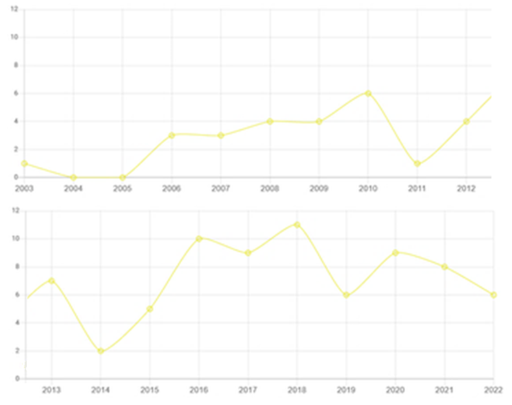 This research analyzed the scientific articles that address the management of cooperative companies that have been published in journals belonging to DOAJ between January 1, 2003 and December 31, 2022. This period of time is comprehensive and representative of a domain of scientific knowledge of the subject, the year that begins and ends the period of the selected 20 years is completely included. The domain under research covers articles that deal with the problem of cooperative management as a distinctive type of company, but in correspondence with management approaches. After the segmentation of quality criteria to study the recovered documents, they are distributed irregularly, so the productivity indicator is unstable (see Figure 1).