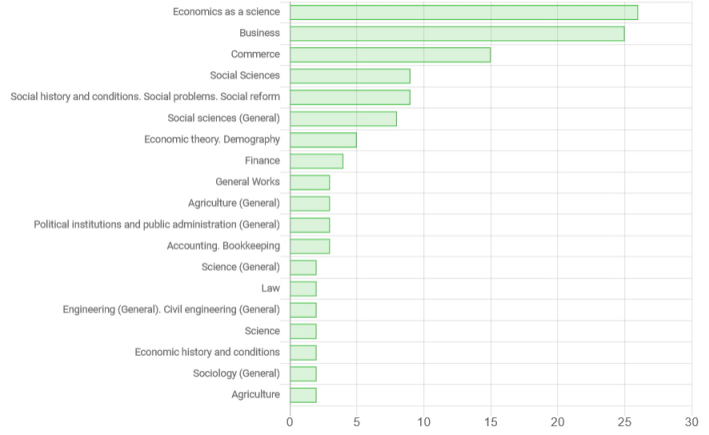 The three main subjects in which the recovered articles are classified are: Economics as a Science, Business and Commerce. Likewise, the topic management of cooperative companies has greater emphasis on the disciplines of Economic Sciences, according to the domain analyzed in this research (see Figure 4).