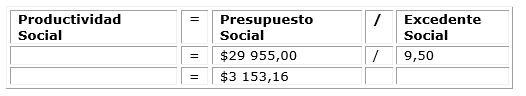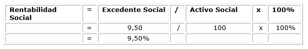 Rentabilidad Social: es el resultado de dividir el Excedente Social entre el Activo Social en el período que se desea evaluar. Indica el nivel de satisfacción de necesidades sociales.
