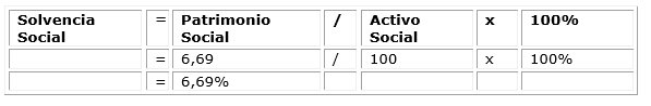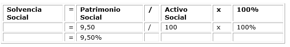 Solvencia Social: Es el resultado de dividir el Patrimonio Social entre el Activo Social y hace referencia a la parte de las necesidades sociales satisfechas. (Cuadro 1)