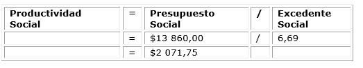 Rentabilidad Social: es el resultado de dividir el Excedente Social entre el Activo Social en el período que se desea evaluar. Indica el nivel de satisfacción de necesidades sociales. (Cuadro 2)