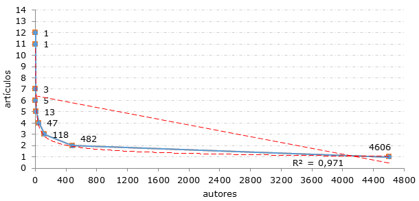Al analizar la productividad personal, se comprueba que se cumple la ley de Lotka (Spinak, 1996), que afirma que el grueso de los documentos publicados sobre un determinado tema coincide con un número muy reducido de autores que se encuentran especializados en esa área de conocimiento.