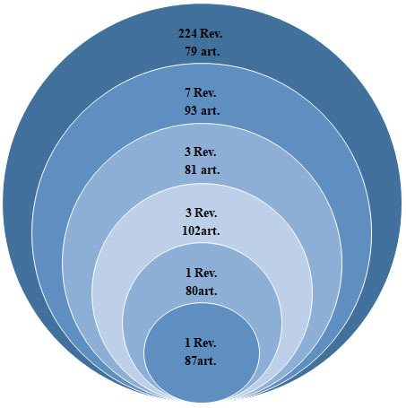 Bradford's law: Bradford's law states that a small number of journals, which make up the core, concentrate a similar number of articles as a large number of journals, grouped in areas of greater dispersion (Miranda Arguedas, 1990).