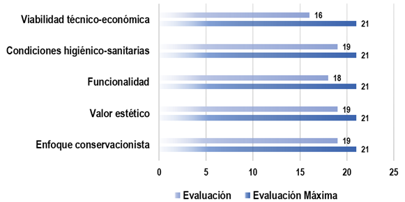 The evaluation yielded high ratings across all criteria, with scores of 19 for aesthetic value and sanitary conditions, 18 for functionality, 16 for technical-economic feasibility, and 19 for conservation (out of a maximum of 21 per criterion). These results confirm the high potential of these resources for tourism development, particularly due to their scenic quality, good state of preservation, and adequate sanitary conditions.